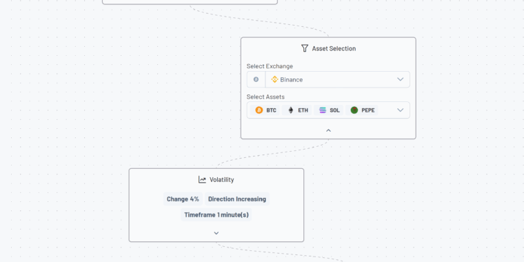 Volscan is a logic layer designed to analyze the percentage change in asset prices over a user-defined time period. This feature empowers traders to set specific thresholds that, when met, automatically trigger buy orders based on an asset’s price movement.